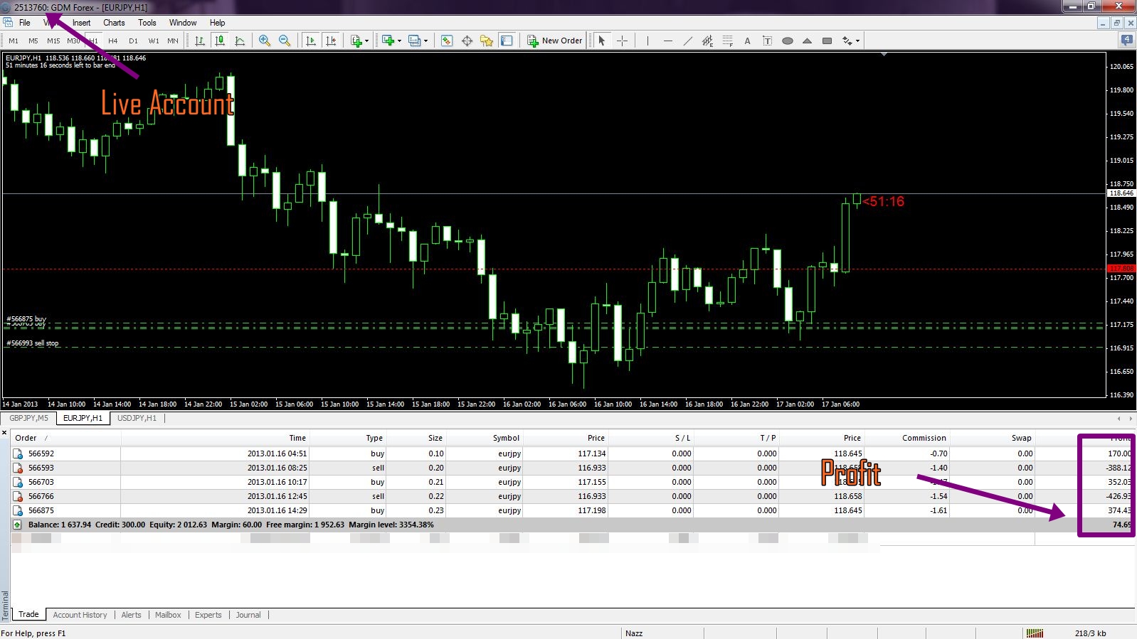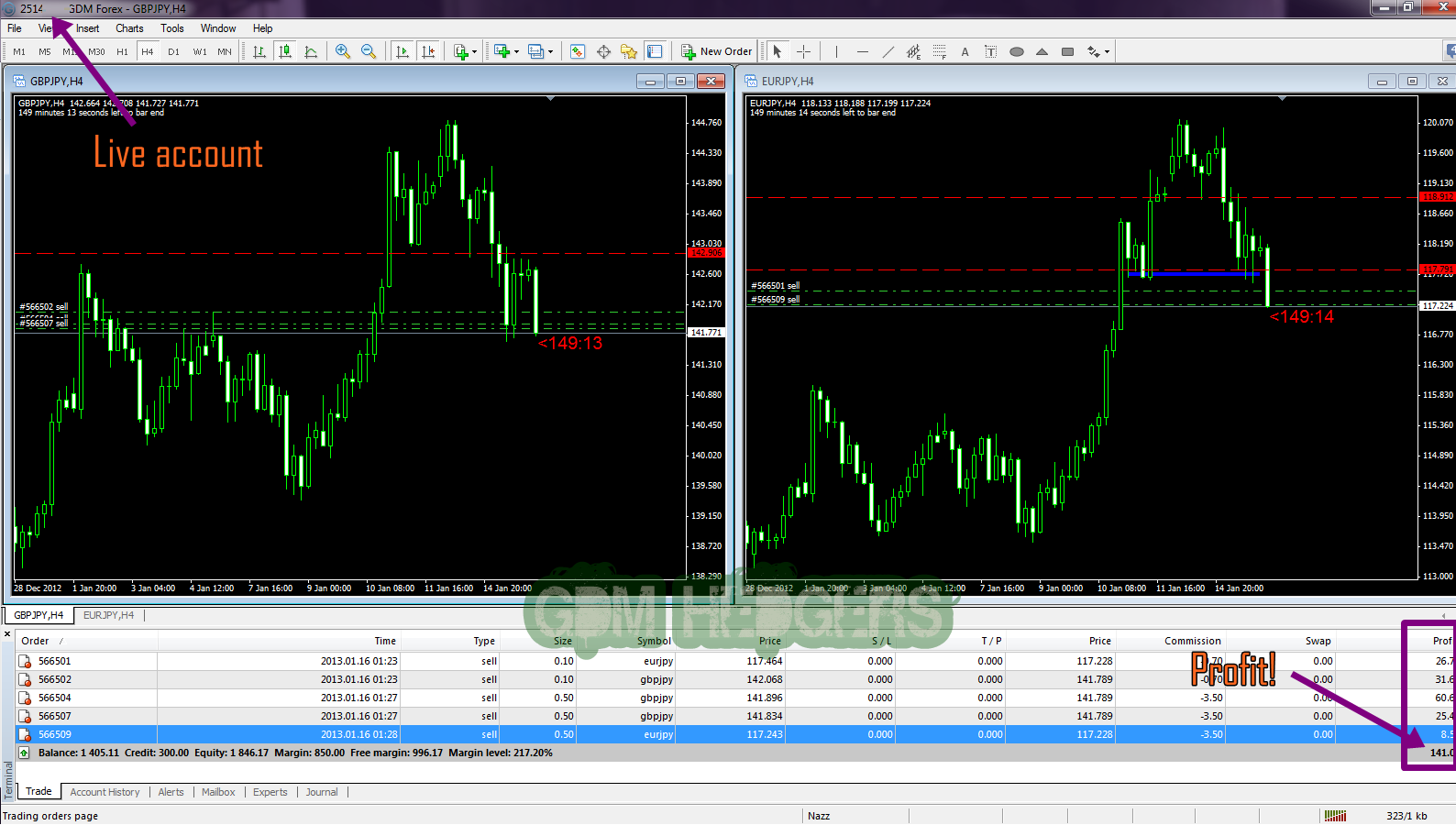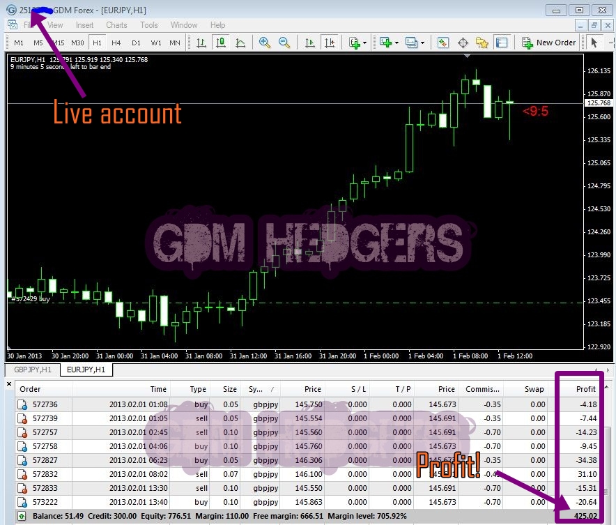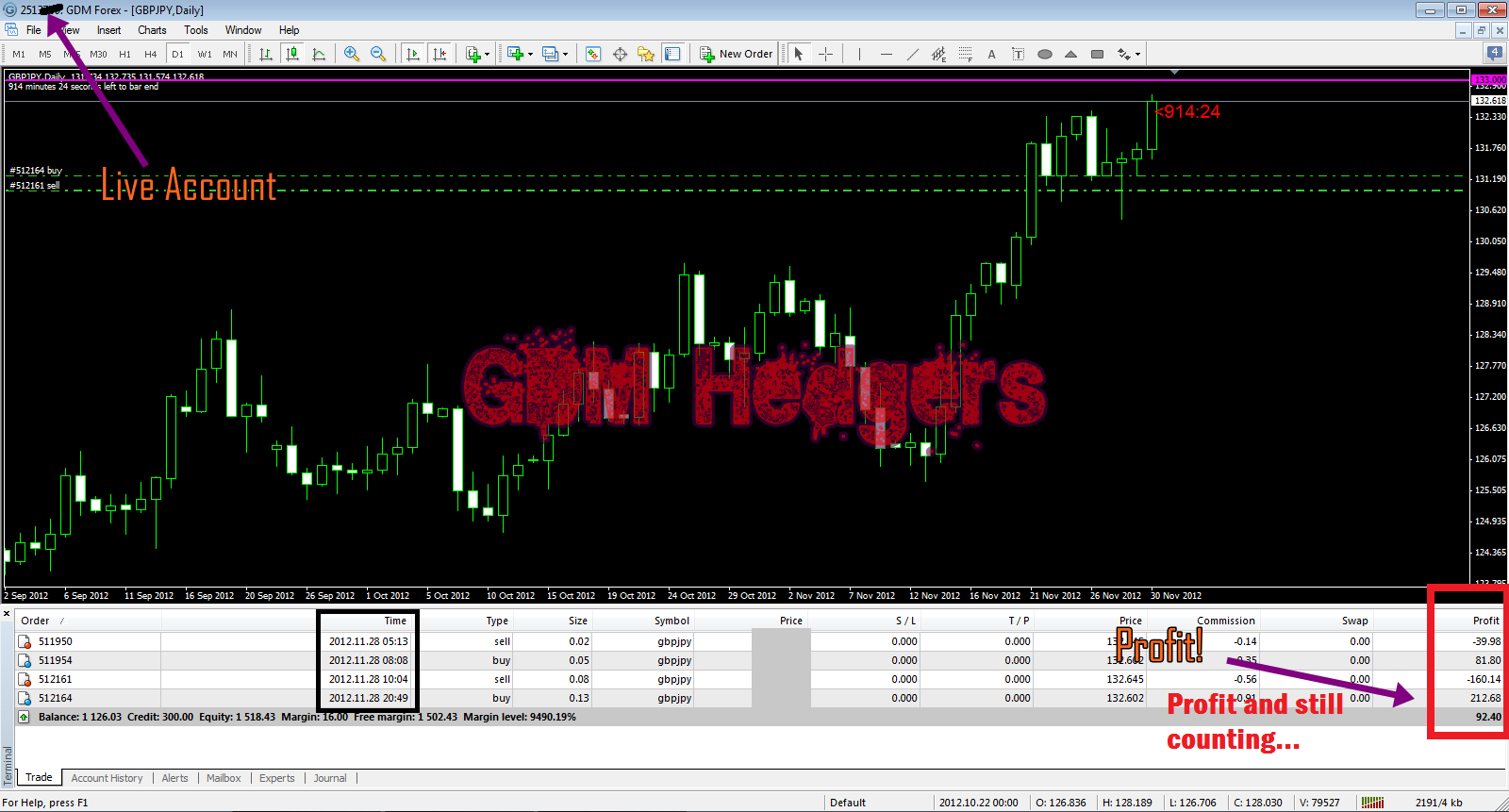 anda menggunakan cara yang betul! Nak lihat bagaimana strategi hedging yang hebat ini menghasilkan profit? Ayuh lihat paparan trading berikut: