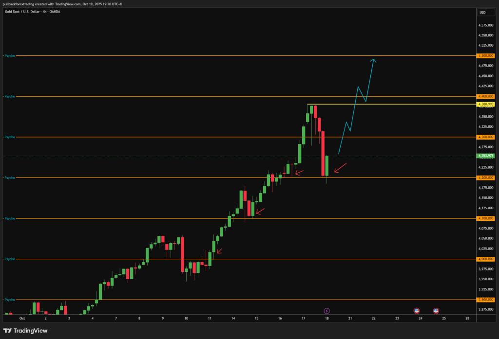 Gold mencatatkan ATH lagi namun ia membuat penurunan sebelum sesi penutupan market minggu lepas. ATH baharu dicatat pada 4380.99 sebelum ia membuat penurunan ke 4200.00 semula.