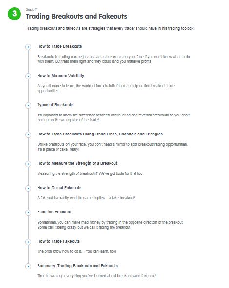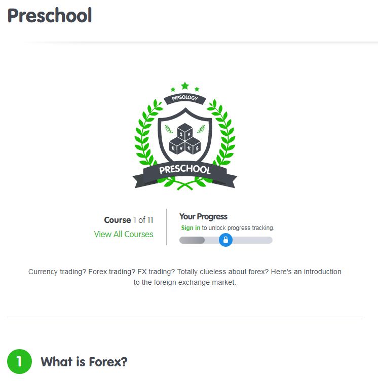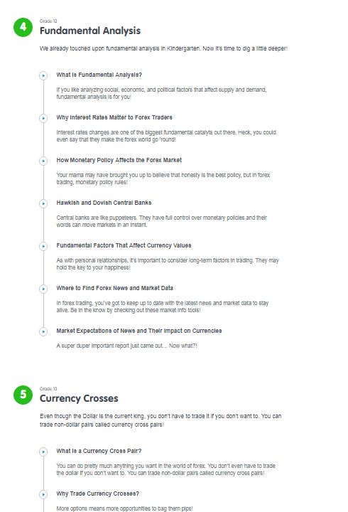 Menariknya di babypips.com ini adalah asas demi asas diajarkan secara berperingkat dari tahap paling bawah iaitu ‘tadika’ hinggalah ke tahap tinggi iaitu graduasi. Maklumat yang disampaikan juga ringkas dan mempunyai contoh dalam bentuk gambar menarik.