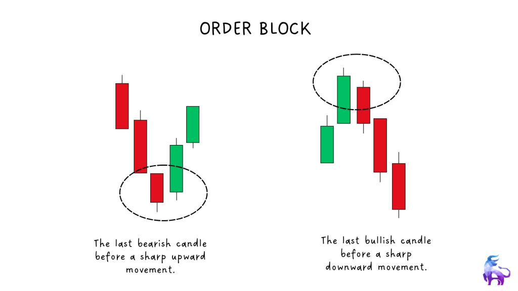 Order Block adalah lilin (candle) di mana institusi besar memasukkan pesanan (order) yang sangat besar sehingga mengubah arah pasaran.