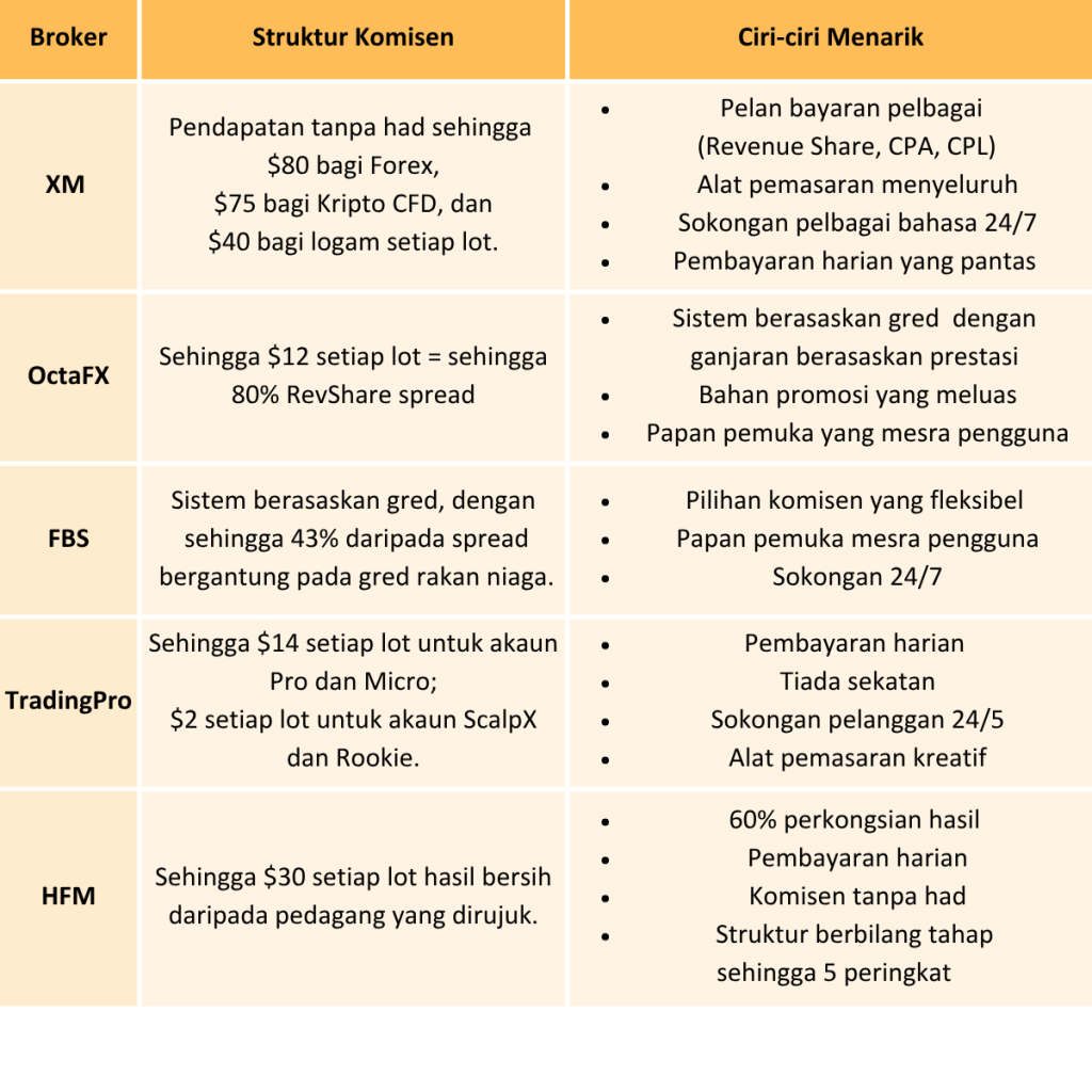 Perbandingan Program Afiliasi Broker Terbaik di Malaysia