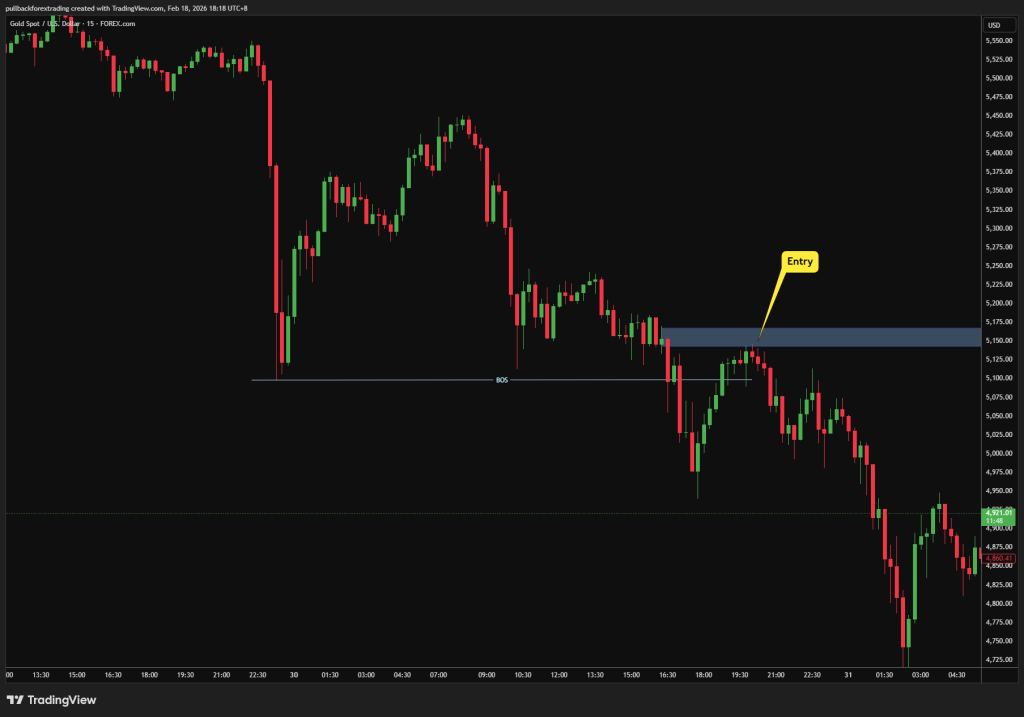 - Tunggu pullback (optional) – Selepas BOS, harga biasanya retrace untuk test level lama.