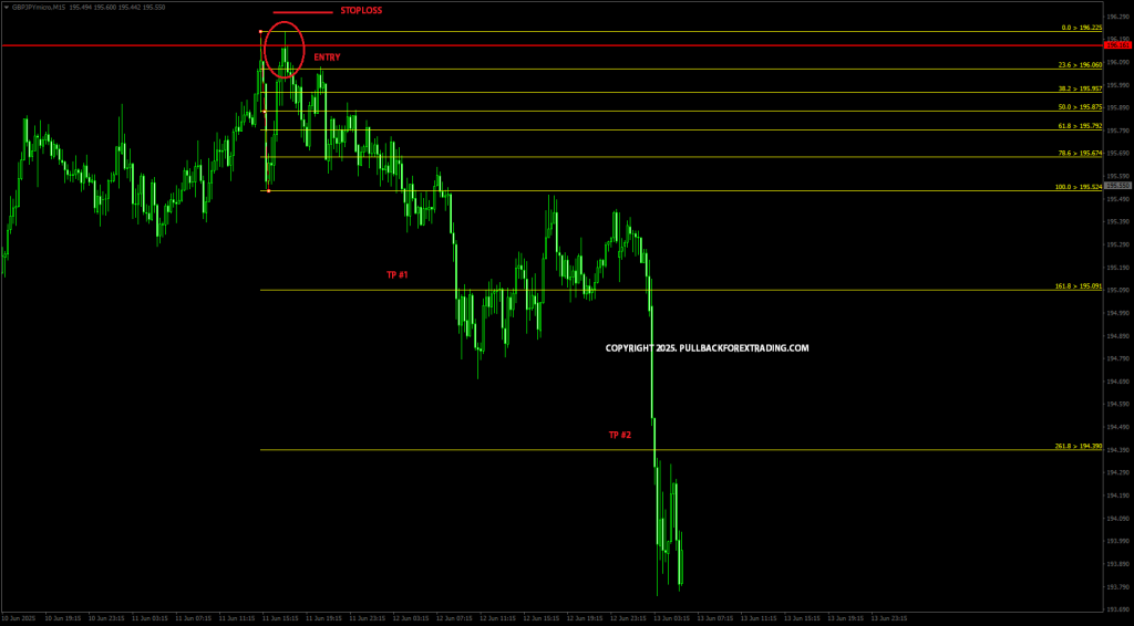 Step #3 – Buka M15. Draw fibonacci extension/Fibo TP